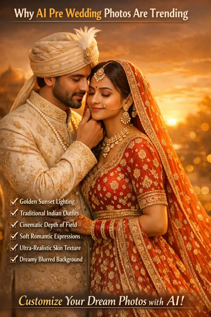 Pre-wedding photography has always been special. Couples want romantic lighting, elegant outfits, emotional expressions, and a dreamy background. But professional shoots can be expensive and time-consuming.